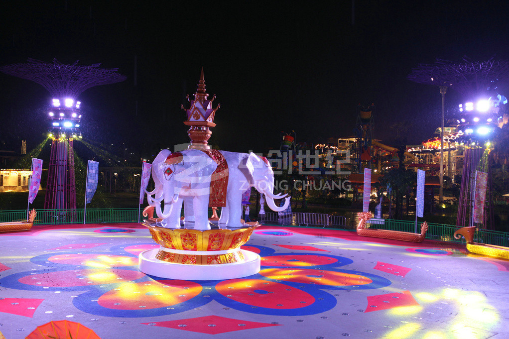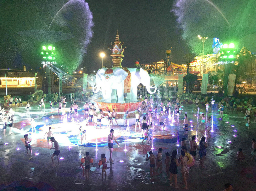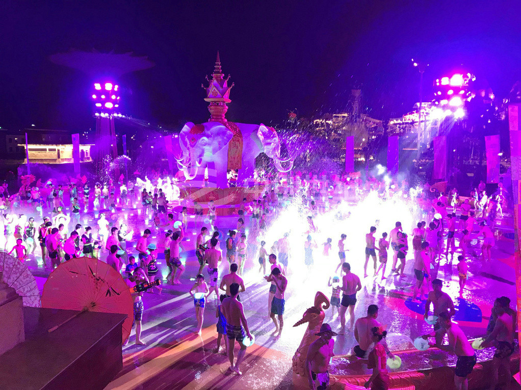潑水廣場是玉林克拉灣斥資1500多萬元建造的廣西大型專業娛樂項目。廣場潑水面積超1200平方米,運用傣族基本元素,并結合當地文化,極具民族風情。